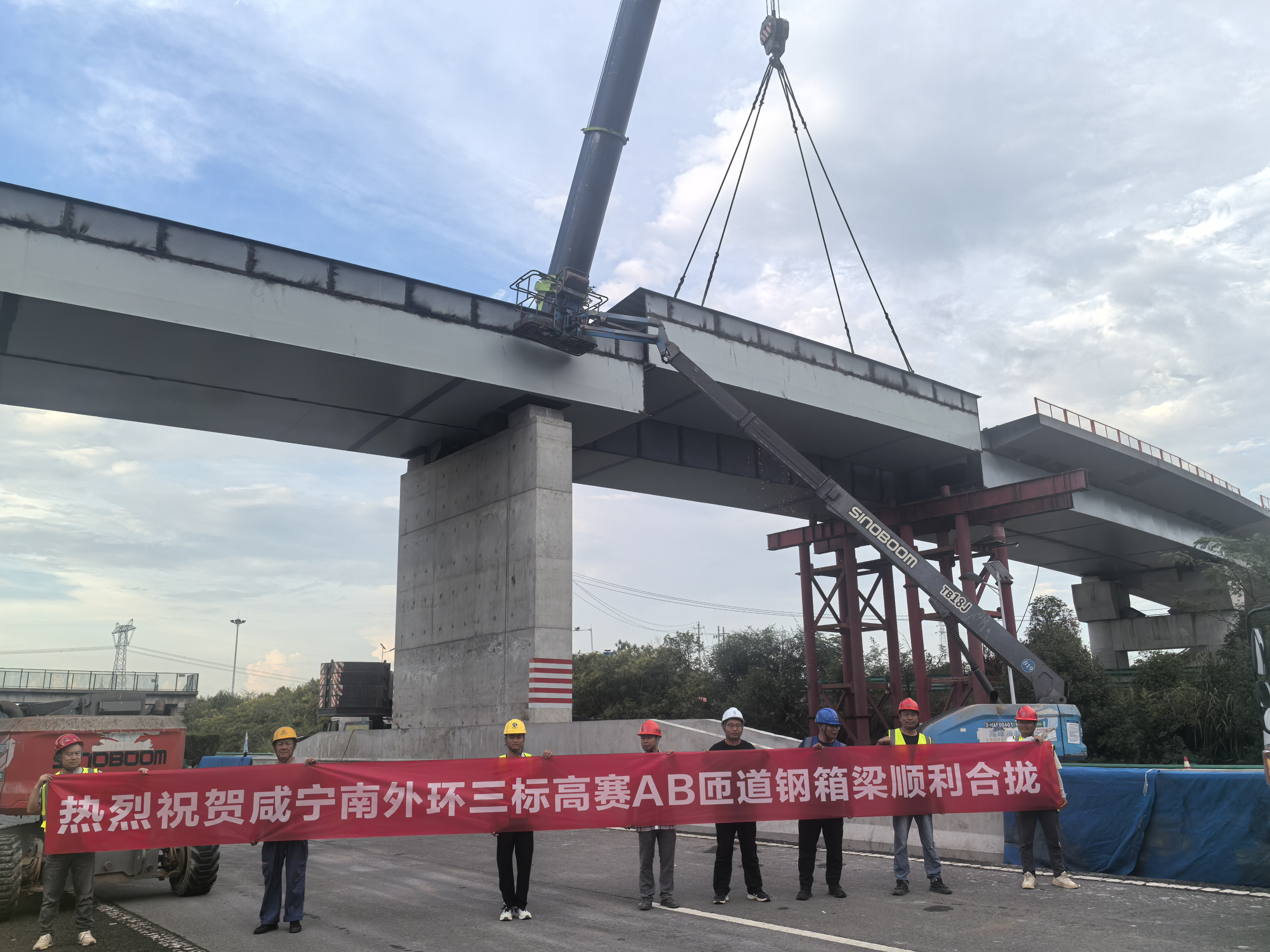 咸寧南外環高賽樞紐互通 A、B 匝道橋 鋼箱梁完美架設圓滿完工